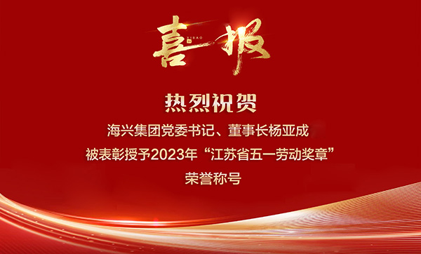 • 喜報!熱烈祝賀海興集團黨委書記、董事長楊亞成被表彰授予2023年“江蘇省五一勞動獎章”榮譽稱號